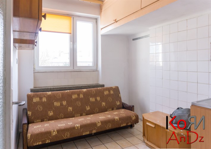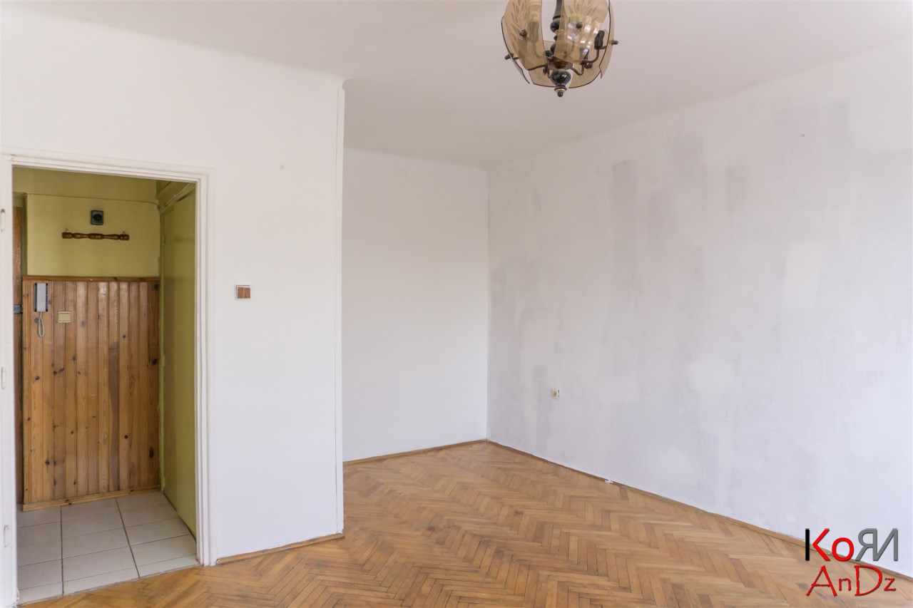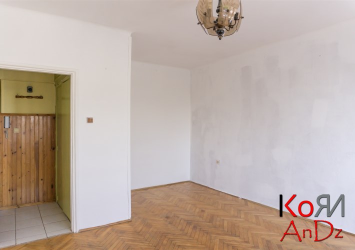 Mieszkanie usytuowane jest na drugim piętrze bloku, składa się z pokoju, kuchni, przedpokoju, łazienki z wc. Mieszkanie daje spore możliwości aranżacyjne, ale wymaga remontu.